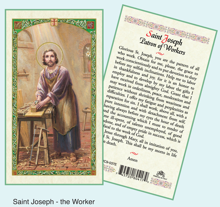 Embrace the profound spirituality of St. Joseph the Worker with our revered St. Joseph the Worker prayer cards. Each card is thoughtfully designed to invoke the intercession and blessings of St. Joseph, the foster father of Jesus and the patron saint of workers, craftsmen, and those seeking employment. Carry the essence of St. Joseph's humble and diligent work ethic with you, drawing inspiration from his role as the protector and provider for the Holy Family. These pocket-sized cards serve as a reminder of faith and provide solace and encouragement. Share these meaningful cards with others seeking guidance in their work or keep them close for personal reflection. Experience the transformative power of St. Joseph the Worker's intercession and enhance your spiritual practice today.